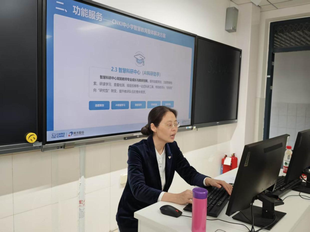 培训现场,专家围绕智慧资源、智慧备课、智慧科研、智慧命题四大核心模块,开展深入浅出的讲解与沉浸式实操演示。针对智慧资源,传授精准检索技巧,破解教研资源筛选难题;聚焦智慧备课,演示数字化备课流程,助力教师打造特色教学设计;围绕智慧科研,指导教师规范论文撰写、梳理课题资料,打通教学到科研的转化通道;立足智慧命题,传授学情适配命题技巧,提升教学测评精准性。专家现场即时答疑,教师们认真实操、积极互动,学习氛围浓厚。