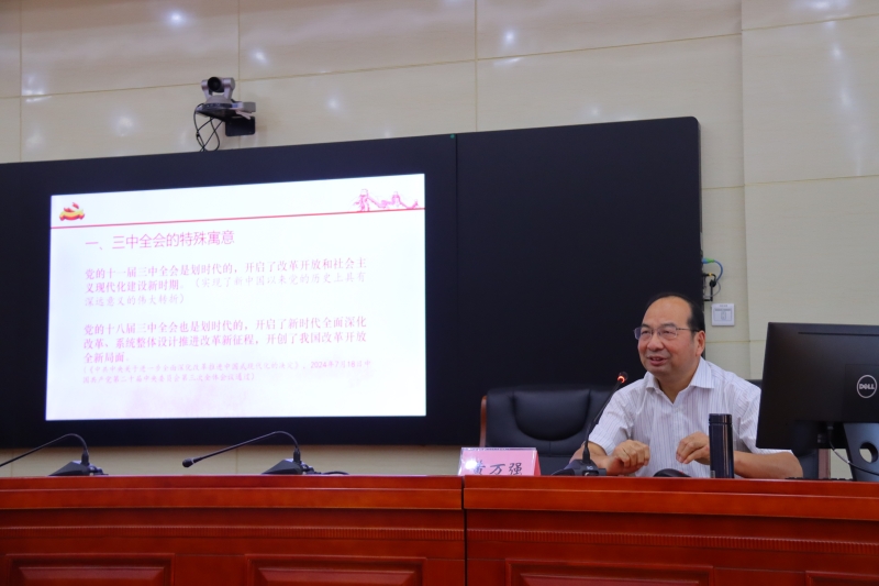 会议邀请市教研院高中思政教研员黄万强作了主题为《学习贯彻党的二十届三中全会精神,为办好有温度、高品质的济南教育贡献力量》的辅导报告,围绕党的二十届三中全会的重大意义、主要内容和贯彻落实等三个方面进行了宣讲。